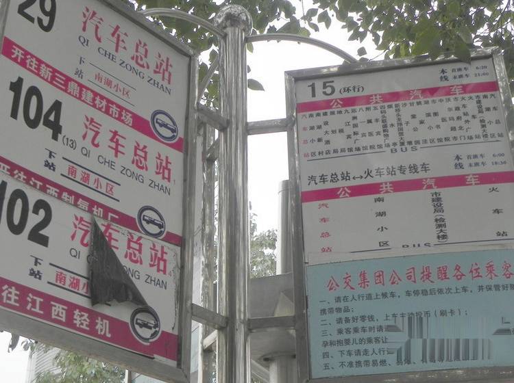 汽车总站北门(公交站):15路环行;27路;29路;102路;106路;汽车总站(公交站):15路环行;29路;33路;66路;102路;104路;106路;九江36路...;九江(公交站):机场大巴九江线;老干部活动中心(公交站):8路;10路;11路;16路;27路;33路;801路;基督教堂(公交站):801路;临时站(公交站):16路;招呼站(公交站):16路;荷花垄(公交站):16路;28路;801路;南湖小区(公交站):15路环行;27路;29路;66路;102路;104路;106路;九江36路...;远洲九悦廷(公交站):106路;