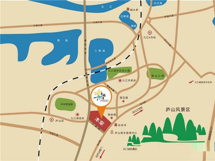 其他:庐山缆车换乘中心、九江高铁站、石门涧景区、东林寺、西林寺、东林大峡谷、剪刀峡、赛阳茶场、庐山雨雾茶场、贤母园、岳氏名园、桃花源漂流景区 老年病专科医院、康复医院、护理医院、国际养老公寓、居士林禅修酒店、护理大楼、古镇风情街、膳食管理中心、社区健康小岛、颐乐学院、阳光文艺广场、大型连锁超市、杏林堂养生康复中心、健身会所、四季恒温泳池、门球场、网球场、风雨连廊、秀山长廊、溪畔健身步道、护理培训学校、素斋餐厅、念佛堂、讲经堂、千人大礼堂等等