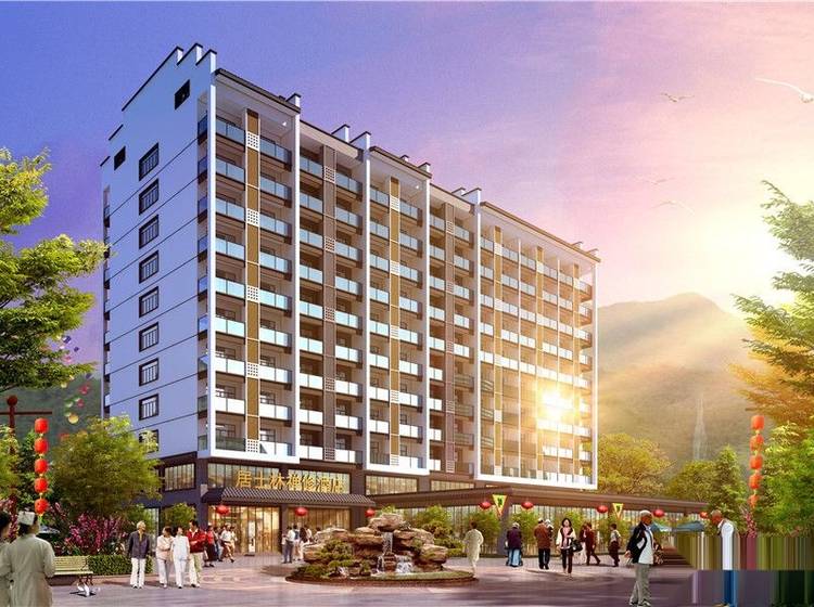 庐山幸福里社区总规划占地102亩,建筑面积20万㎡,共拥有养老床位近5000张,将打造成大健康主题医养结合养老社区。社区主体建筑为3栋9万㎡的大健康主题医疗综合体,以及20栋低密度的适老化中式居所。配套医疗包括老年病专科医院、护理医院、康复医院,通过三位一体的医疗体系,全方位呵护入住长者的健康生活。社区还建设了四季恒温泳池、风雨门球场、健身会所、养生会馆、护理培训学校、颐乐学院等多功能老年综合娱乐设施。以及禅修度假酒店、风情商业街、国际养老公寓、阳光文艺广场等生活配套,为长者营造老有所为、老有所乐的快乐生活氛围。 毗邻社区的千亩农园,将建设成“农业休闲+观光旅游”的农业旅游公园。建成后将使社区周边小环境达到每立方2000个左右的负氧离子,比城区高出5到10倍,成就真正的“天然负氧离子疗养馆”,是整个赣北地区乃至华中地区中较富“氧气”的健康颐养社区。 庐山幸福里在全国创先提出“尊老”社区概念,旨在打造一个与以往养老项目不同的长者家园,是传统养老社区的升级版,结合了综合性医疗配套、低密度中式居所、休闲农业以及学院式的老年文娱生活,在国家5A景区--庐山风景区脚下,精心打造一片专属于尊贵老人的颐养乐园。