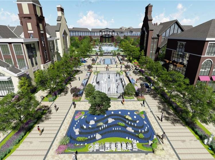 庐山西海温泉半岛项目地处庐山西海风景名胜区,整个项目的规划以国际品牌温泉度假酒店为核心,涵盖了温泉公寓、温泉别墅、商业街、高端国际品牌温泉度假酒店四大系列产品。配套全球高级的量子医学研究院、疗养院、传统国学养生文化中心等,以打造全球罕贵生命资产为目标、建设成为【圣境养生,山海时光,百岁绵延】的度假养生圣地。整个项目的规划以高端国际品牌温泉度假酒店为核心,以100米宽的中央景观带为轴线,一期沿滨湖路规划为英伦风情商业街及酒店式公寓,二期西北部规划为温泉度假别墅、公寓,东侧为温泉泡池集中区、度假小木屋、量子医学研究院等。