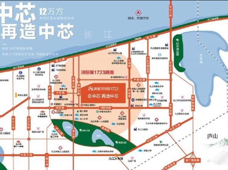 自驾:项目位于浔阳区庐峰路与浔阳路交汇处,立于城市正中心主干道,道路四通八达,各大交通道路贯穿整个城区交通枢纽,扼守老城中心发展主轴,十几条公交线路环绕,出行方便快捷。火车站离项目2km,全国各地随时启程;汽车站离项目2.5km,区县间畅通无阻;城际快速车道离项目1km,20分钟抵达全城;1km到达长江大桥收费站,湖北、安徽自由穿梭,更可去往南昌、湖北、广州、安徽、湖南、