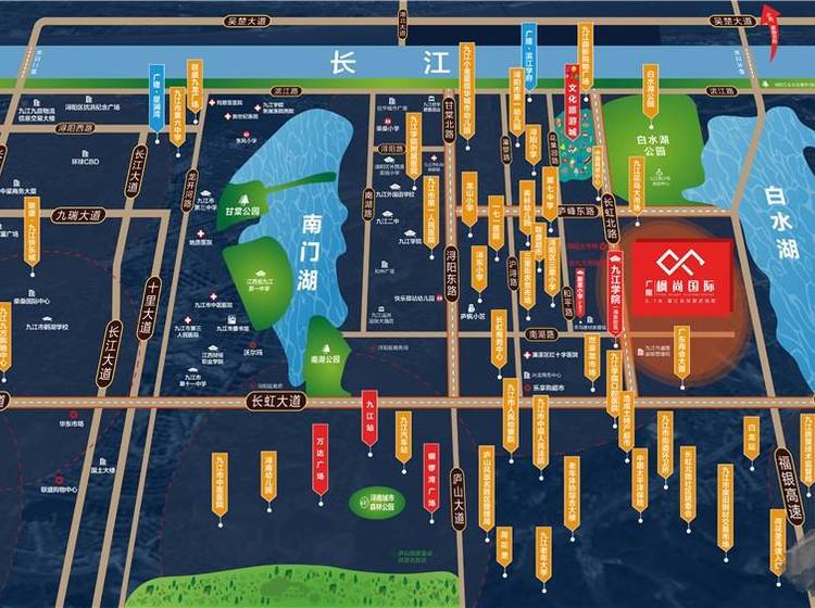项目位于九江市浔阳区长虹北路与南湖路交汇处,用地面积为17236㎡,总建筑面积约68879㎡,由浔城巨子广隆匠筑。 浔阳城脉·白水湖畔·大学旁,项目创见5.1米层高,建面约36-51m2双钥匙智慧LOFT,买1层享2层,金地物业,尊崇礼遇。
