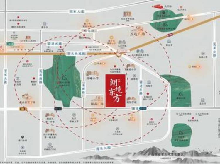 中奥华地朗境东方落址濂溪正芯,于濂溪大道、木樨路两条城市主动脉,无缝接驳全城;一个路口直连都九高速,快速通达都昌、湖口、彭泽,是未来城市发展窗口之地。 周边百年名校双峰小学、约13万㎡颐高广场、三公园、医院、火车站......生活配套一应俱全,坐享九江便捷生活圈,未来潜力不可估量。 中奥华地朗境东方,作为中奥朗境系战略升级之作,融宋式美学与当代建筑审美,唤醒东方文化自信,让城市生活回归自我文化场域。