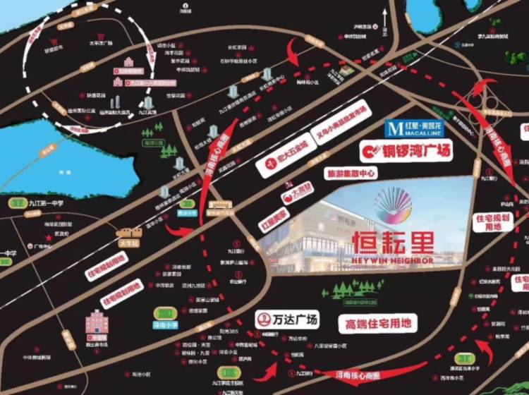 恒耘邻里中心,位于九江濂溪区,临近汽车站,火车站及高速入口,周边居民区丰富,更将带来庞大的消费人群,加之项目所积聚的大量邻里消费阶层,必将会让这里成为商业集聚地带,占据整个城市的较大消费比例。 九江恒耘邻里中心以先进理念和专业精神致力打造 “较新鲜、最潮流、较快捷”的新型邻里mall,紧抓城市消费最前沿,抢占九江消费至高点,满足客户对潮流消费的较新追求,势必火爆九江。 恒耘里,重组多维商业体系,国际级开发团队重金打造五馆四街业态,衣食住行一网打尽,纵横邻里消费客群。 鲜生活馆——首创物业自持农贸购物中心模式,供给社区居民的“菜篮子; 尚生活馆——顺应线下体验、线上购买的消费趋势,满足居民日常购物体验需求; 淘生活馆——围绕各年龄段儿童成长所需,打造儿童教育、娱乐大本营; 悦生活馆——配套社区医疗、健康、养老产业,补充社区康养资源;