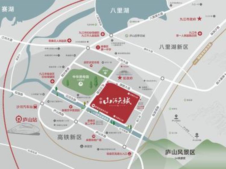 公交:庐山高铁站、汽车站、临近公交站、柴桑区高速出入口、城市高架快速路(建设中)