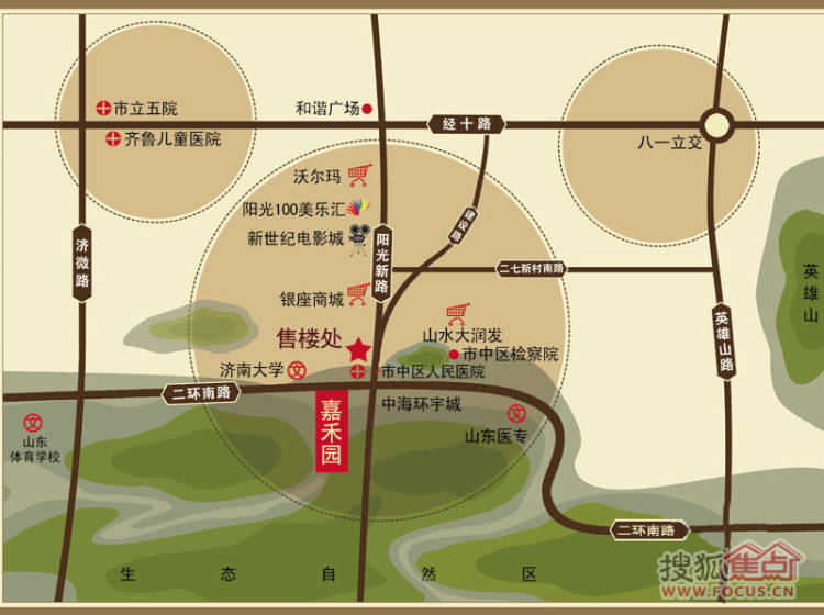 三名嘉禾园位于济南市南部九曲生态片区,阳光新路南首,居城市中轴线南段,属城市新兴中央居住区。