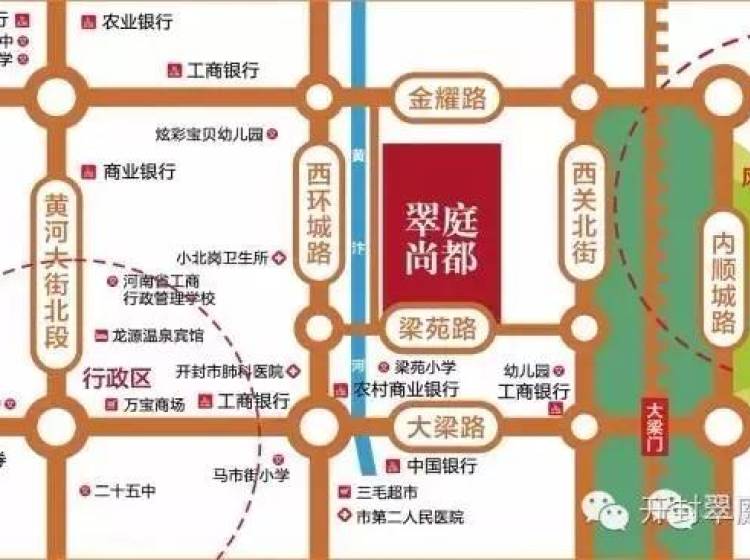 翠庭尚都是以小高层、多层为主的花园洋房,一层带院,临黄汴河为底层商业的综合社区。产品形态丰富,定位高端,小区配套水、电、双气,首期由2栋小高层和4栋多层组成,一期正在积极的筹备当中,预计在9月动工建设。项目绿化率34%,容积率2.0,南北通透,媲美洋房的舒适度和高得房率。翠庭尚都旨在打造开封新庭院时代。 整体规划:总用地规模122.9亩,总建筑面积约185122平方米。临街一层底商,人车完全分流,成漫步型社区。将城市发展,建筑创新,人居理念与商业繁荣的开发思路,系统地融入到项目开发建设的每一个环节,力求打造具舒适感、实用性,超前性的舒适型综合小区。 建筑设计:由国家甲级设计公司上海同建强华建筑设计有限公司担纲设计,以简欧风格作为建筑设计的主旋律。建造形态简洁、线条分明、运用色彩的明暗,鲜淡产生视觉冲击。使人感到高贵、典雅,富有浪漫主义色彩。 园林景观设计:采用先进的设计理念,将环保、生态、绿色的概念引入规划和设计的每一个层面中,着力打造皇城根下新型人文景观社区,展示古城开封的新形象、新风貌。 周边配套: 教育资源:七色光双语幼儿园、开封梁苑小学、十四中、开封教育学院、河南大学、黄河水利学院、开封大学、工商管理学校、党校、警校。 行政机关:梁园社区服务中心、开封市金明区政府、开封市住房公积金管理中心、开封市金明区广电局等。 金融理财:开封市商业银行、中国银行、中国工商银行、农业银行、建设银行、中原证劵等都近在咫尺。 休闲娱乐购物:清明上河园、万岁山公园、翰园碑林、天波杨府、西环城路上的王氏餐饮、祥龙斋等,万宝商厦、三毛购物超市,梁园菜市场。 医疗机构:梁园社区卫生服务站、开封市妇幼保健院、开封金明医院等。 相关信息: 建设中原经济区政策的提出使开封这个七朝古都重新焕发历史光彩,在几千年文明的积淀上,改变传统宜居格局。项目西邻清明上河园、翰园碑林、龙亭、天波杨府、万岁山森林公园等皇家园林,西临黄汴河,居市中心仅10车程,繁华中独享宁静,可谓动静两相宜。 皇城根下的庭院洋房 项目与公共园林风景区为邻,与著名的人文景点清明上河园仅一墙之隔,雄伟壮观的龙亭、绿树成荫的万岁山森林公园,自古帝王景私藏,如今却是皇城根下百姓共畅享,如此、如此的优质生活,谁能不向往。 人文价值的归属地 在规划上,实现完全的人车分流,以创造人性化的居住环境为理念,起用团队打造人居精品。小区内多层与小高层错落而置,集居住性、舒适性、安全性、耐久性于一体,以精益求精的精工追求,打造便捷、舒适、惬意的生活乐土。 精工建筑 以历史为背景,以千年文明为依托,对建筑进行了全新演绎,深灰色面砖的建筑基座,砖红色面墙砖主体与米黄色涂料错落铺色,简洁中透出大气,以及开放包容的气度。近50米的超宽楼间距,视野更开阔,通风采光功能更佳。 优质户型 经得住客户的使用考验,紧凑实用,力求每个细节都有超乎想象的存在价值,潜心精研,打造南北通透、精准细致的优质户型,一梯两户的便利与高得房率引入居住生态。