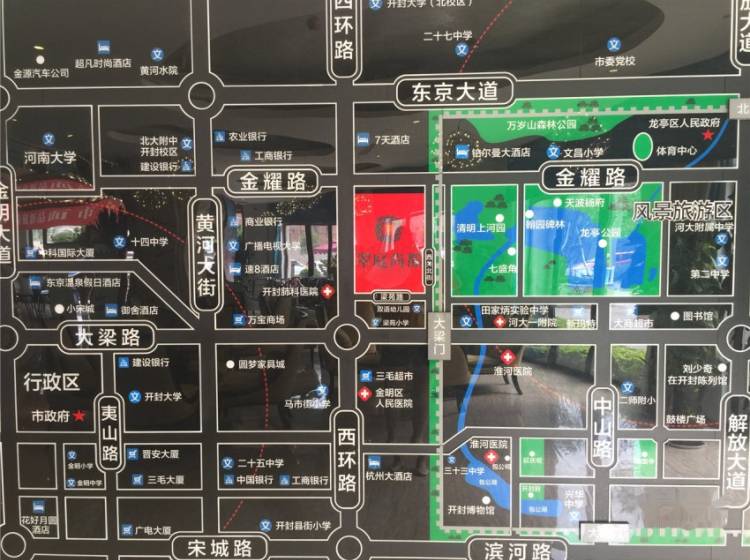 梁园小学、双语幼儿园、河南大学、黄河水利学院、开封大学、教育学院、党校、警校、清明上河园、万岁山公园、翰园碑林、天波杨府、梁园菜市场。 水、电、双气