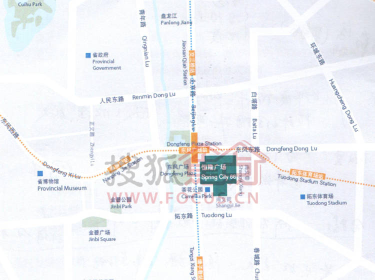 2. 恒隆广场平行于东风东路东西向横轴形成独特的城市空间,购物商场配合旁边的商业楼群为合成宽广的长廊及绿地主广场,与北京路以西的东风广场化成一道了绿油油的亮丽风景线,把项目内外空间无缝地连接起来。