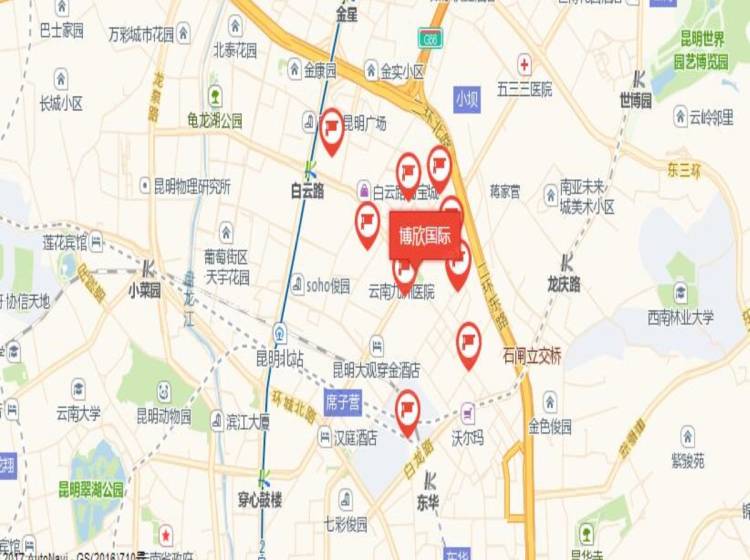 博欣国际项目是写字楼与4.0先锋商务结合体,博欣国际立志打造为昆明穿金路商圈具代表性的商务标杆,目前项目配备了写字楼市场上为齐全且先进的软硬件服务是博欣地产在昆明主城区的重要商务力作!项目位于穿金路与白云路交汇处,联盟大酒店对面,属北市区的成熟商务圈之一。本项目周边交通路网发达,距东边的长水国际机场约30车程,距南边的火车站约15车程,离地铁2号线的白云路站和4号线的白龙路站步行约10路程,离一环约3车程,离二环约1车程,项目周边还有10多条公交线路经过,出行非常便利。