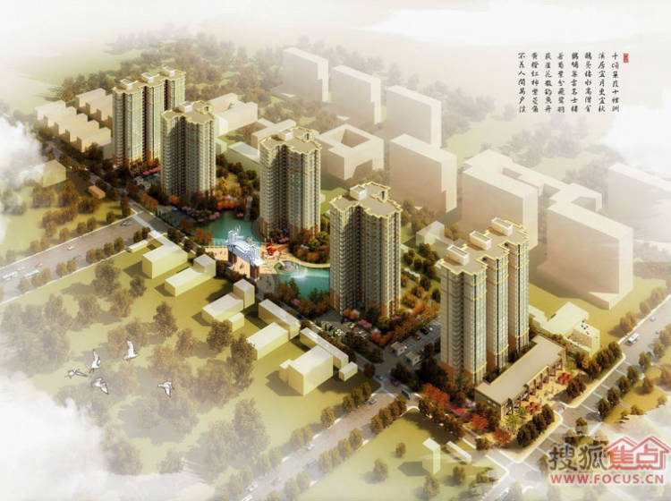 项目总占地62亩,总建筑面积14万㎡,所在地块为南北走向,错落分布24层高的5栋板塔结合住宅楼,户型建筑面积96㎡-39㎡左右共计1440户,楼间距超大,保证了户型的光照时长及业主私人空间的安静、安全。共布置4组楼间绿化组团,小区主入口设计了2块大面积水域与绿化相结合的中心景观带。