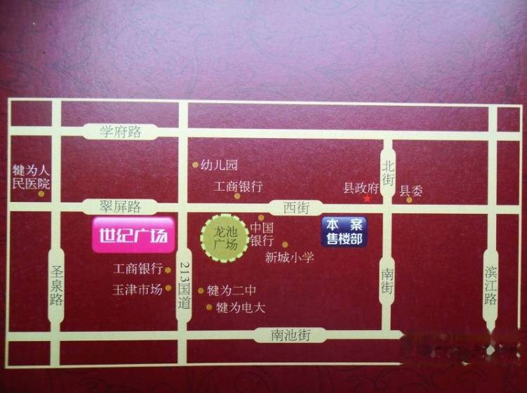 世纪广场是由省内实力雄厚的四川永恒地产开发有限公司开发,担当设计的是具有甲级设计资质的北京龙安华诚建筑设计院,承建商是四川安乐建筑有限公司,由这样的团队打造出来的世纪广场项目,是完全可以担当犍为高端物业的典范。犍为县是乐山市大县,是乐山市出入江的东大门,也是213国道线上的明珠,如此重要的地理位置,将有无限的发展机遇。而世纪广场又处于城区繁华的中心地段,具有优越的地理位置和独创的居位环境,所以它将成为政府重点打造的对象,力争打造成为该区域的标志性建筑。 世纪广场坐落于犍为县繁华区域的中心地带(西门红绿灯),占据犍为传统核心消费中心“西街”,不论是休闲、购物、娱乐、商务等,生活左右逢源,尽享生活乐趣;毗邻犍为规格、商务性强的中轴线“凤凰路”,以成熟便捷的交通成就业主的步步先机;低密度、高绿化,守望犍为龙池广场、翠屏山公园,岁月静好,温和从容; 五星级安保系统,户户标配可视门禁对讲系统,更有主卧紧急报警按钮,打造犍为安全的生活标准,保证圈层生活的低调奢华;精装入户门厅,时尚大气;小区内设儿童主题会所,共叙天伦;景观全民健身区,乐享健康;高端英式管家物业服务,配置公共烘干洗衣机、公共自动檫鞋机、代请保姆、代请钟点工、报刊杂志待定收、代订奶品、代订票务等,足不出户尽享优质服务!