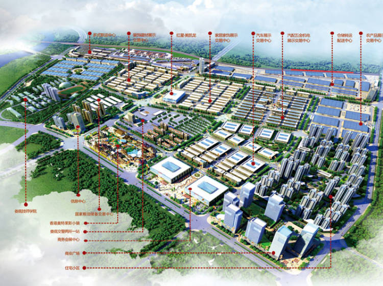 项目建设“九中心一小镇一广场一小区”:信息服务中心、装饰建材展示交易中心、多式联运中心、家居家饰展示交易中心、汽配五金机电展示交易中心、汽车展示交易中心、商务会展中心、农产品展示交易中心、仓储转运配送中心、奥莱小镇、商业广场、生活配套小区。成就中南地区较具规模效应的现代综合商贸物流城。
