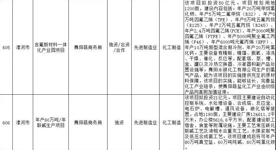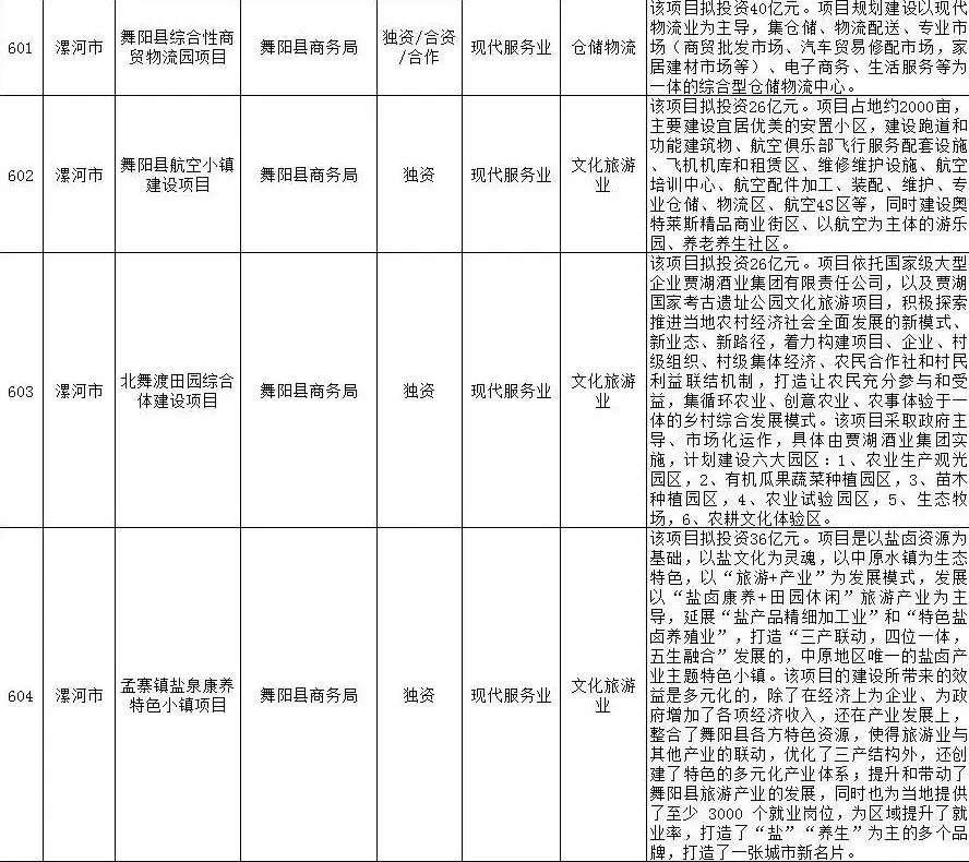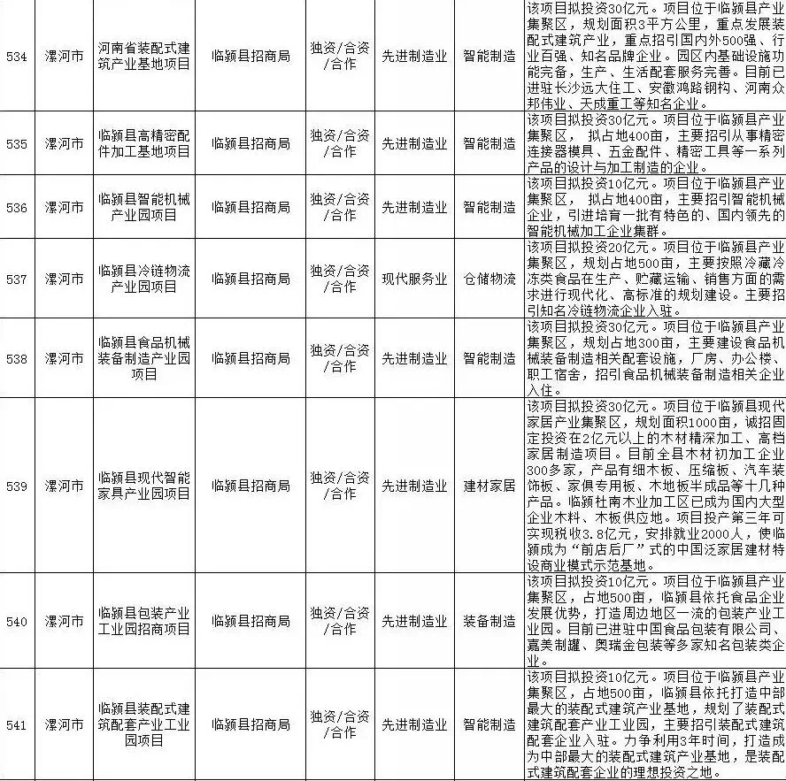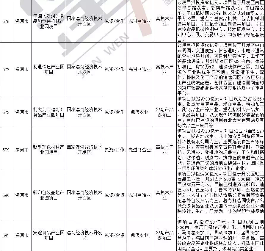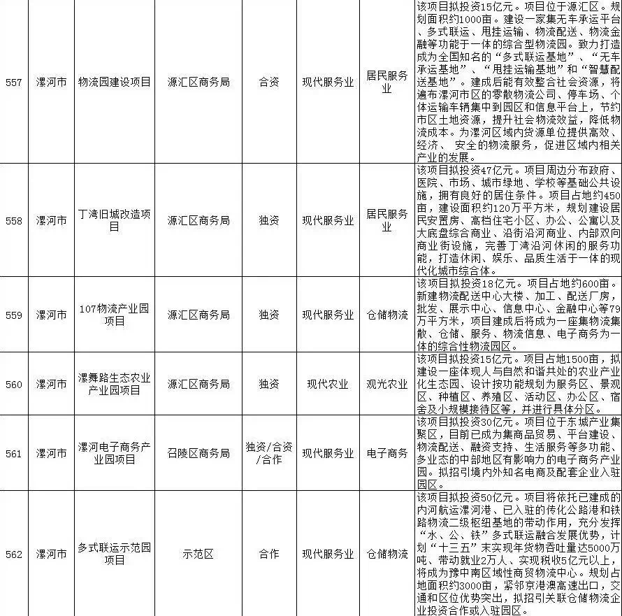 2019年漯河市重点招商引资项目名单