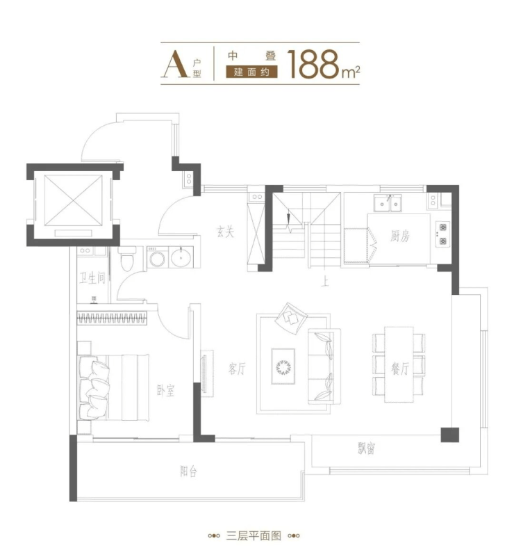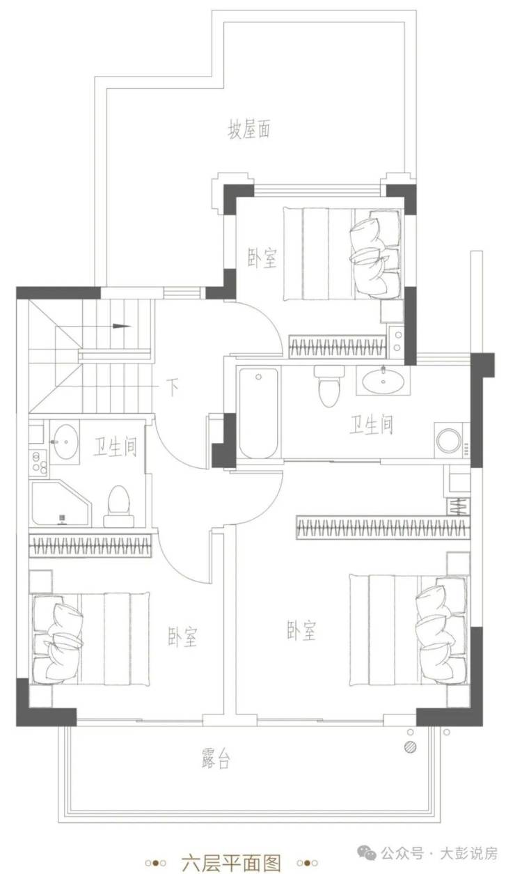 上叠带露台及阁楼,北露台约10㎡,南露台约17㎡,阁楼约40㎡