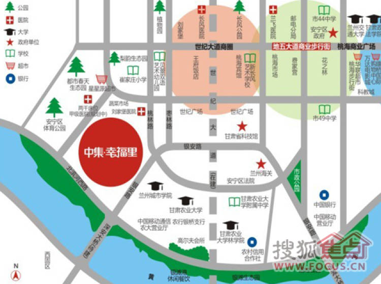 中集幸福里坐拥刘家堡商圈、费家营商圈、培黎广场商圈、西站商圈、三滩商圈,毗邻两馆五中心(展览馆、科技馆、行政中心、体育中心、少儿活动中心、传媒艺术中心、接待中心)、沃尔玛广场、茶艺文化博览中心、马滩文化商贸产业园区、尽享甲级商业繁华。