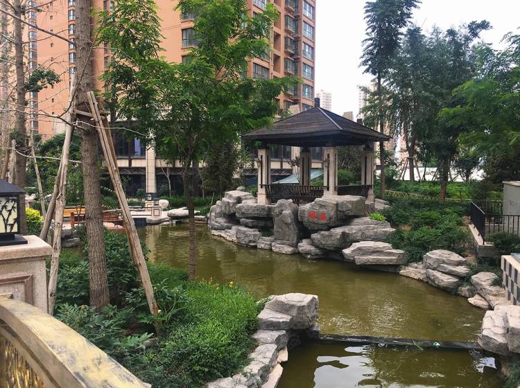 三汇悦郡园林的整体风格为欧式园林,小区内以水景为其景观特色。围绕中央湖景,连接观水亭台、凌波木栈道等几大景观组团,给人们带来行走其中的乐趣。从同纬度地区遴选近百种花卉树种,原冠移植胸径30公分的各式名贵树种,银杏、云杉、白蜡、国槐、法国梧桐、香椿等。