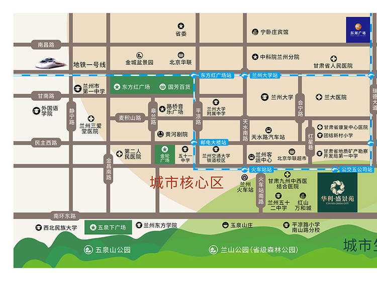 华利·盛景苑位居兰州城关组团地段,雄踞兰州城市正脉南环路,东邻东部,西接兰州火车站商圈,南向大兰山景区,执掌城关主城区与兰山旅游生态区,集生态宜居、主城繁华于一体,区域内拥有完善的城建配套,丰富的生活配套,天然的生态资源,闹中有静的区位优势不言而喻。