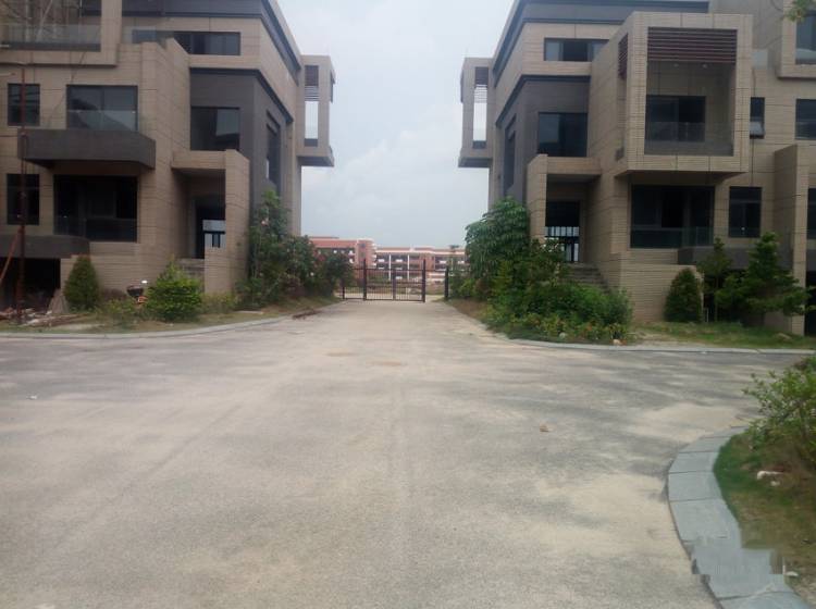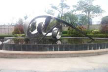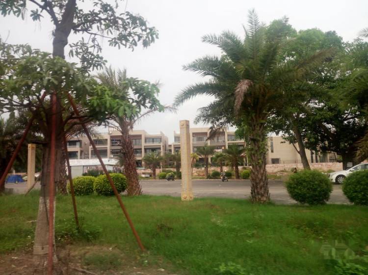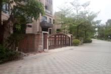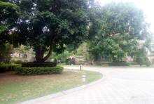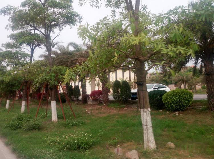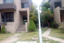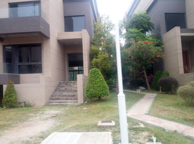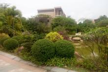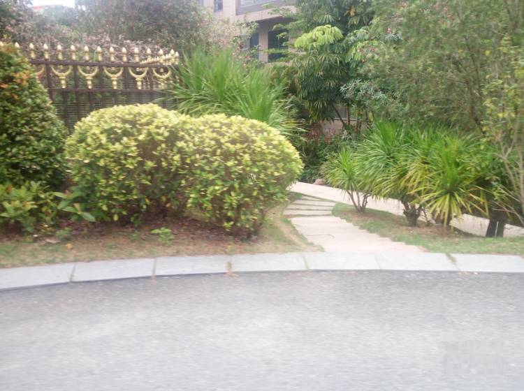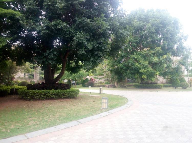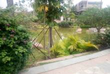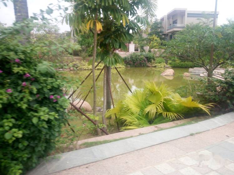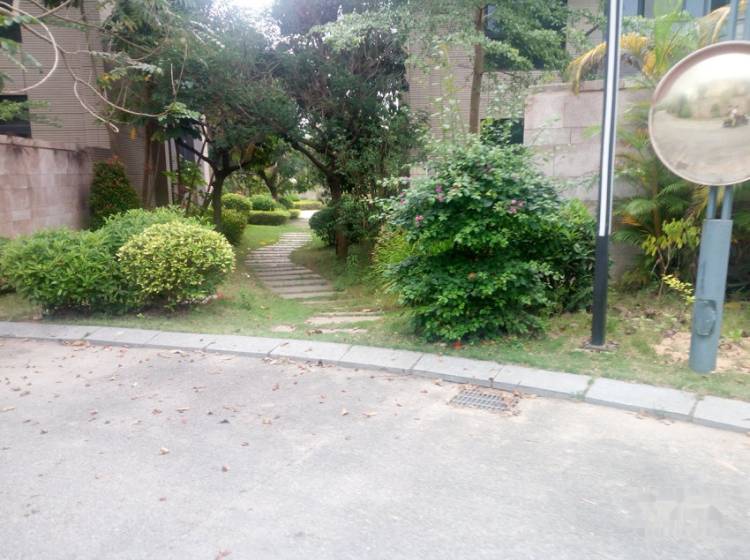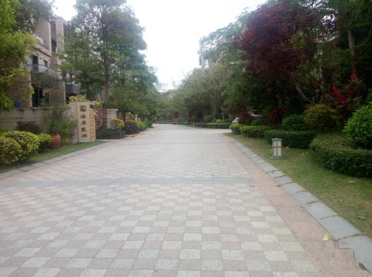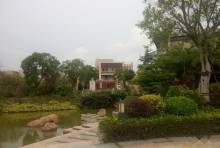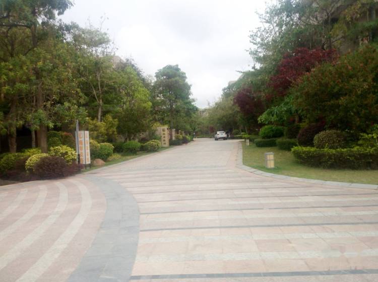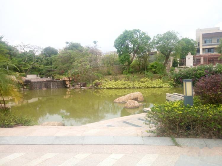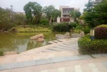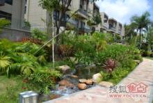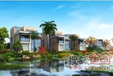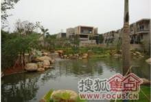 别墅区以斜坡式小溪流水、人工造湖,环岛式规划形成。