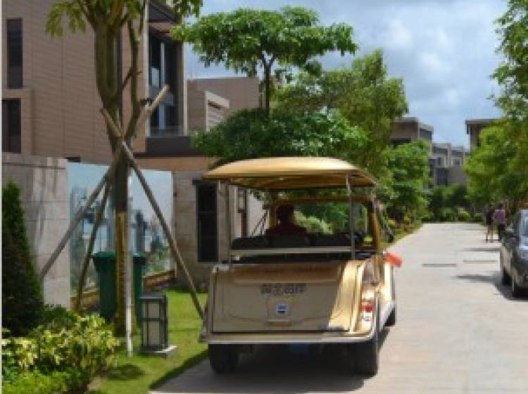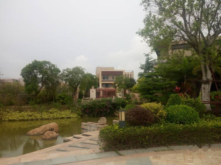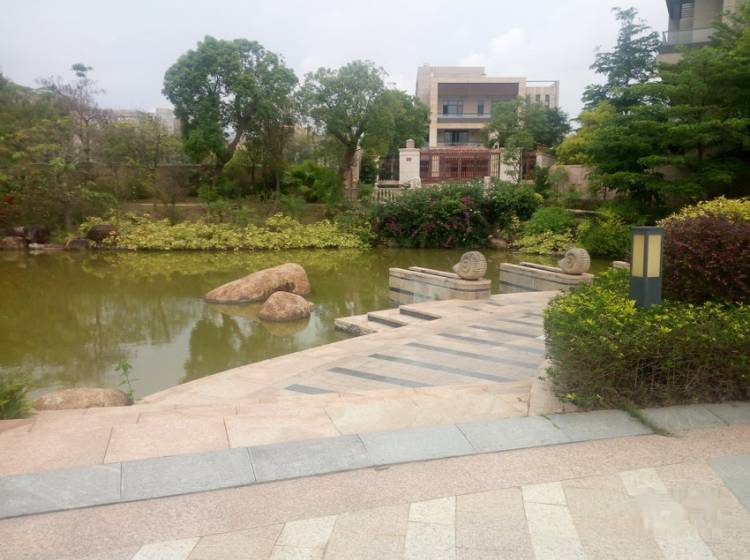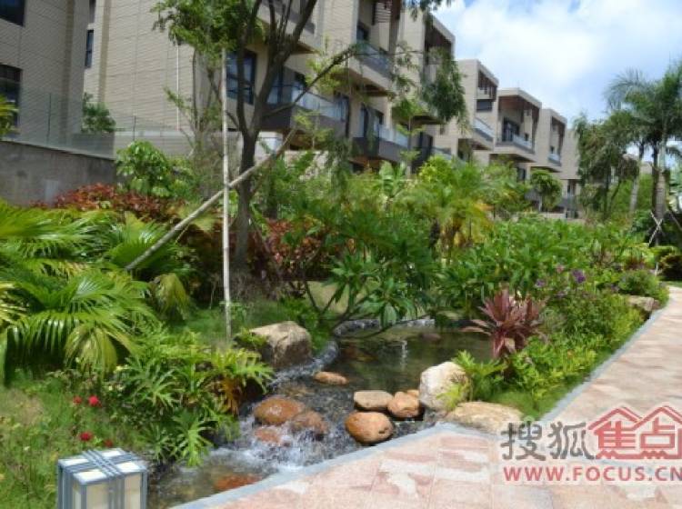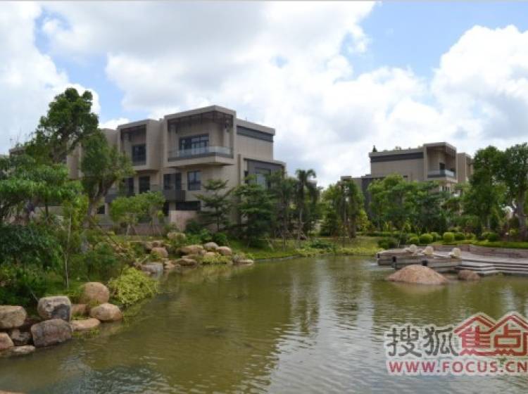 小区内呈环岛型设计,特邀请了香港知名风水大师指导设计。整体突出一个岛的概念,以斜坡式小溪流水将水循环,再以人工湖将水聚集,象征为一个“聚宝盆”。那为了不让水往外流,是特意在人工湖前面设计了酒店,让所有的风水财富给小区内业主享受。项目分两期建设,一期是别墅,二期是高层,其中别墅区的容积率为1:0.55,空间非常空阔,面积主要是以260—800平方左右。
