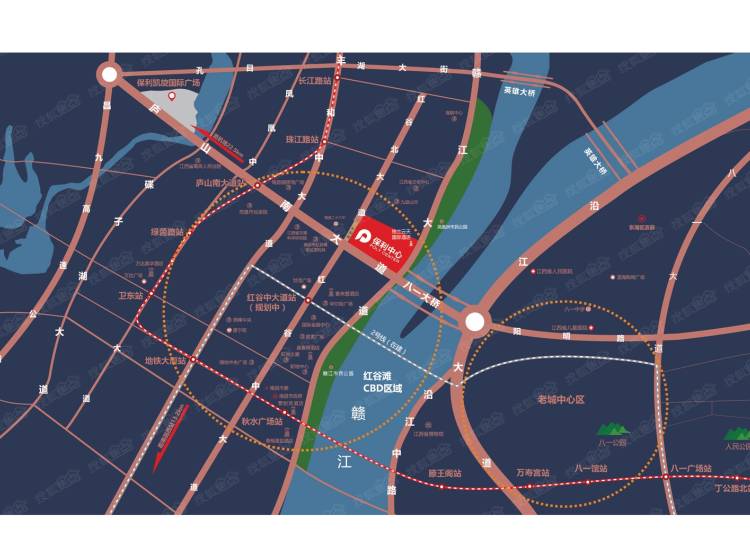 保利中心位于赣江之滨,拥有270度一线江景资源。矗立八一桥头,与红谷滩、老城区等南昌核心区域瞬息连接。坐拥庐山南大道、红谷中大道,沿江大道三大干线的黄金立体交通网,临近双地铁口,贯通城市繁华与动力,助力企业资本版图全速扩张。