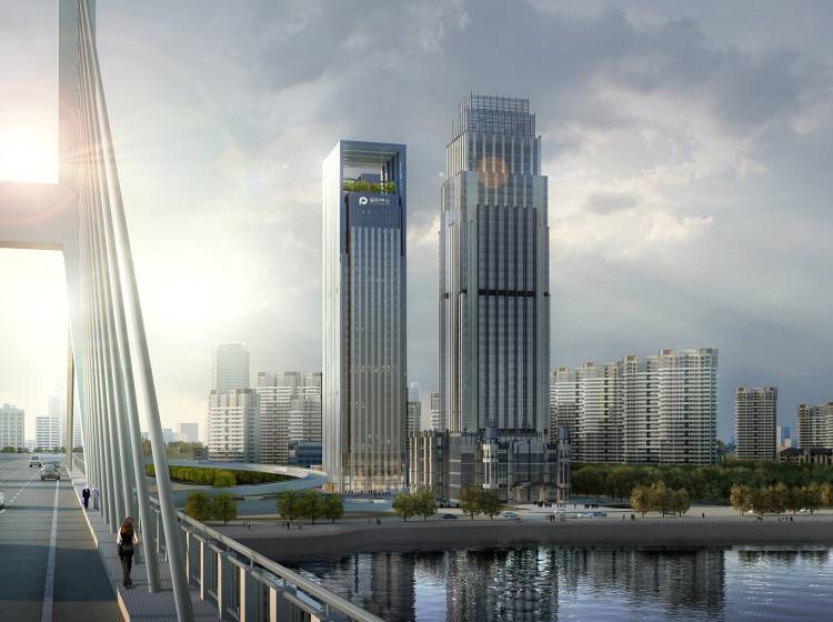 保利中心占地约13亩,总建面约7.5万方,可售建面约6万方(写字楼约5.6万方,商业约0.4万方),共34层,由一栋写字楼及一栋独立商业组成。