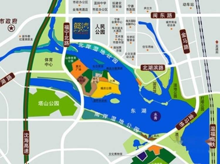 位于宁德市东湖北岸,北面金海湾大酒店,东面是人民公园和会展中心,南面是北岸公园及国家级滨海湿地公园。项目盘踞城市中轴线——闽东路,横贯东西主干道,交通十分便利,到动车站3分钟车程,到沃尔玛、万达5分钟车程。