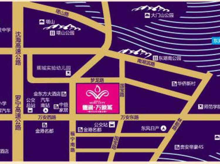 宁德德润万象城位于宁德市东侨区南岸景观带金塔组团。临近宁德市汽车南站。项目用地界线南起万安东路,北至梦龙路,西起福宁南路,东至国宝路。征地面积约96693.3平方米(约145亩),建设用地面积88496平方米(约132.7亩),其中商业金融用地48496平方米(约72.7亩);二类居住用地40000平方米(约60亩)。 项目商业金融地块含四星级以上酒店一座、大型商业中心一座、室外商业步行街一条、商务公寓一座。沿福宁南路设置大于4500平方米的城市开放性广场。二类居住用地建筑面积120000平方米,内含2座26层住宅,4座31层住宅及一座9班幼儿园一座。 德润万象城以水文化为主题打造海西首座“水游商业街区”,双首层概念。汇集大型购物综合超市,约35万平米,打造闽东双MALL购物休闲,引进国际一线知名品牌,知名影院,儿童主题游乐园、多国大型经典美食、餐饮,打造“吃、喝、玩、乐、购”一站式购物中心,满足各类人群的消费、娱乐需求。