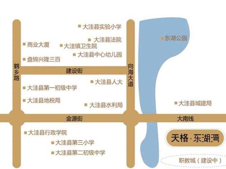 学校:大洼第二中学、大洼第三小学、大洼县高中 商业:兴隆三百、建行、中行、农行、邮政、美芦食府、润德大酒店 、东湖公园、、银行、超市等。 医疗:大洼县第一人民医院 业主休闲娱乐会所、幼儿园 、写字楼