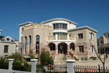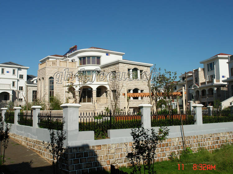 在区内规划设计上,别墅区内道路蜿蜒,林木丛生,主干道贯穿主次出入口,并设多处景观节点,步移景换,生机昂然。区内支路为尽端式道路,负担规模适当的组团,达到层次有致、高低错落的效果。别墅区内充分利用地块西部高地和原有地形的高差,分别布置不同类型的别墅和宅邸。在建筑布局上强调户户推窗见景,室室海韵流淌,令每套别墅宅邸都是观海纳景的经典之作。