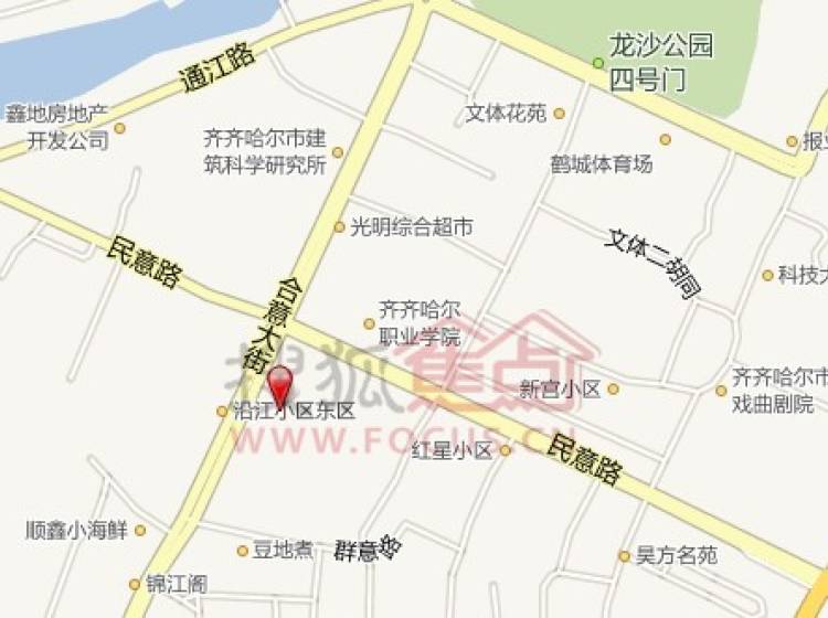 龙沙区合意大街(小腐败街,合意路)东侧、群意路北侧,北靠二厂医院,东至文体街。