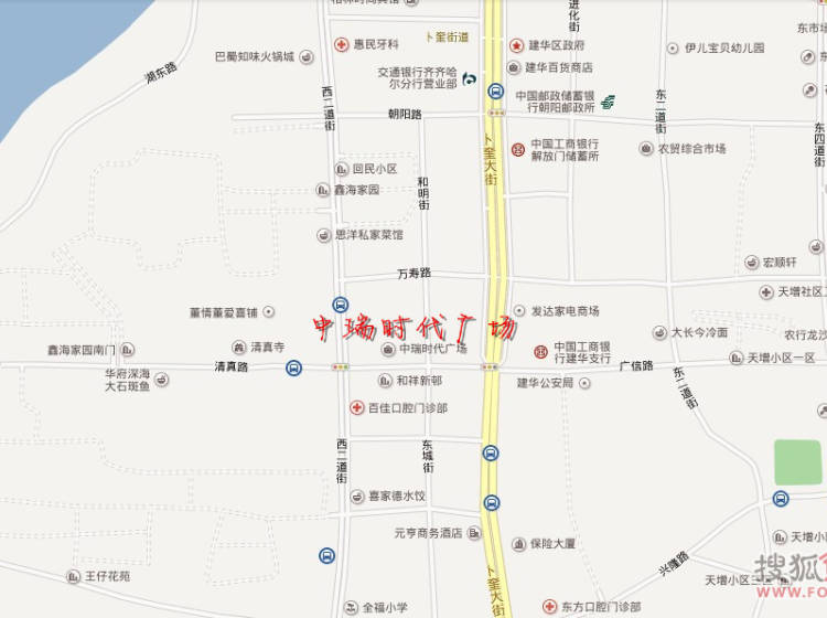可乘18、108、109路到达中瑞时代广场。附近有鑫海家园、王仔花苑等齐齐哈尔高端居住小区,附近有齐市回民小学,临近齐市商业干道卜奎大街。