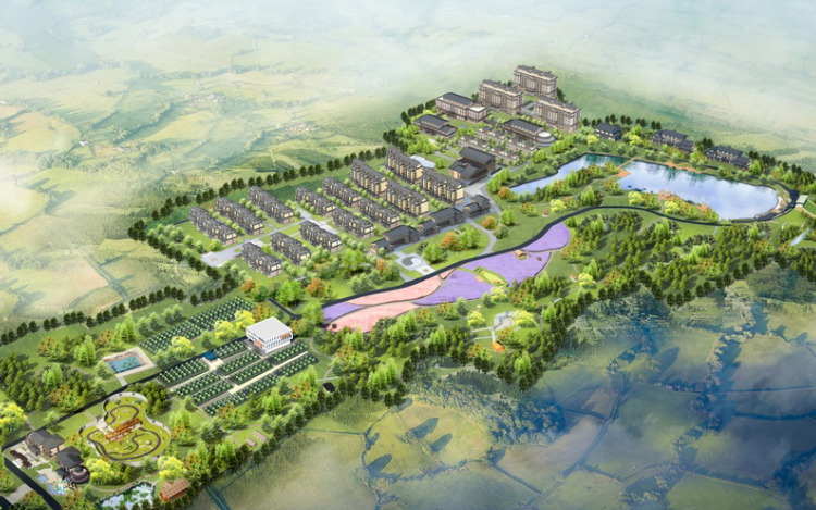 游客中心、养老公寓、医院、室内活动中心、多功能馆、中西餐饮、中医理疗、图书馆、酒店、太极馆、红豆馆、演播大厅、商业街、窑洞民宿