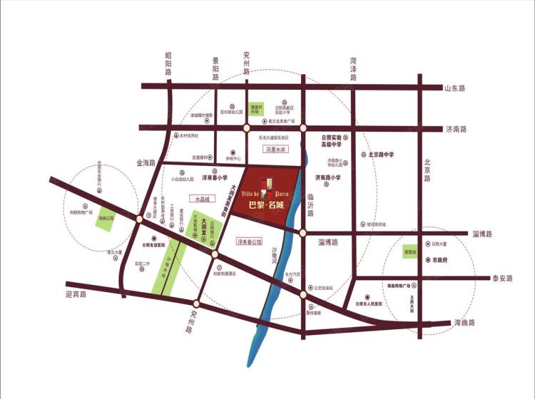 巴黎名城,地处大润发核心位置,西靠兖州路,北接金海路,南连淄博路,坐享各项成熟配套设施,美食文化街、健身中心、购物超市、电影休闲等一站式服务。