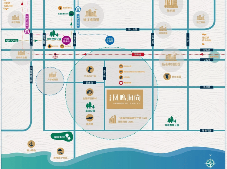 交通便利,项目边南桥BRT直达东方体育中心。自驾浦+金海+林海公路,上海绕城+沪金+规划中S3高速等方便快速达市区各商圈。