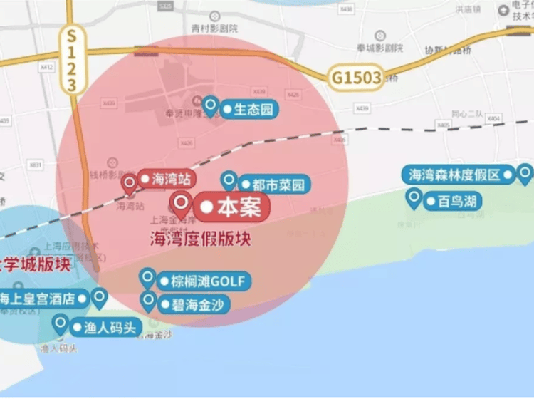 凤鸣海尚位于上海市奉贤区海湾镇,毗邻上海海湾国家森林公园、碧海金沙水上乐园、上海都市菜园、渔人码头景区等4A景区,环境优美。周边有G1501上海绕城高速、S4沪金高速、林海公路、S123浦星公路等交通路网环绕,交通便利。