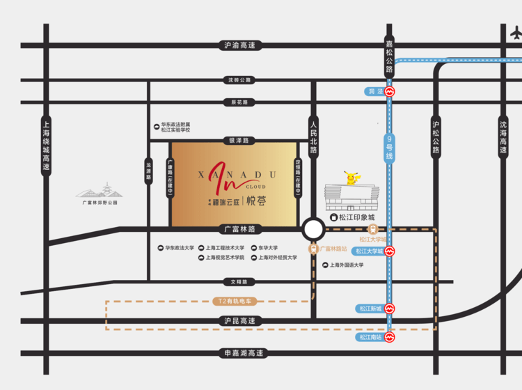 松江有轨电车2号线广富林路站、公交13/15/18/19/24/105/1802路