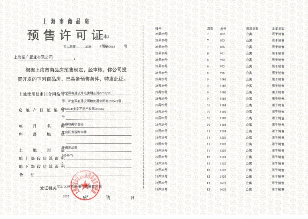 - 宝山房管(2024)预字0000155号 详情发证时间 2024-06-13绑定楼栋