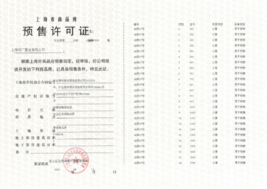 - 宝山房管(2024)预字0000114号 详情发证时间 2024-05-13绑定楼栋