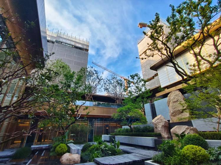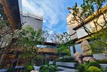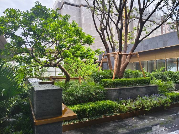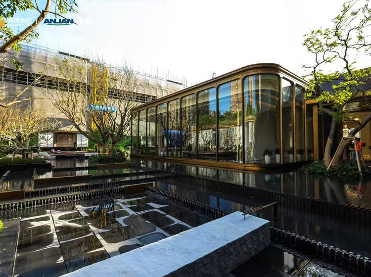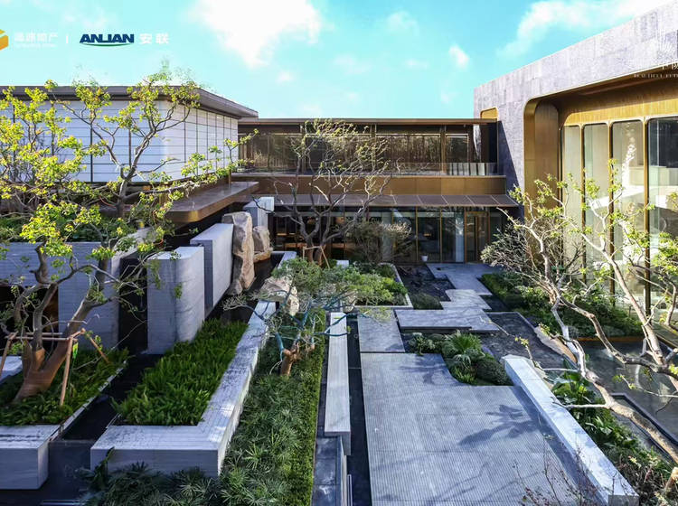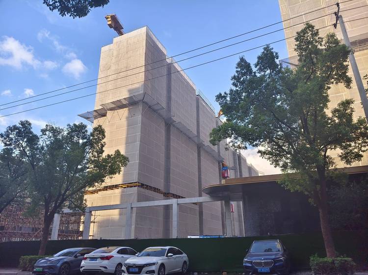 外立面材质以真石漆、铝板、石材、玻璃为主。