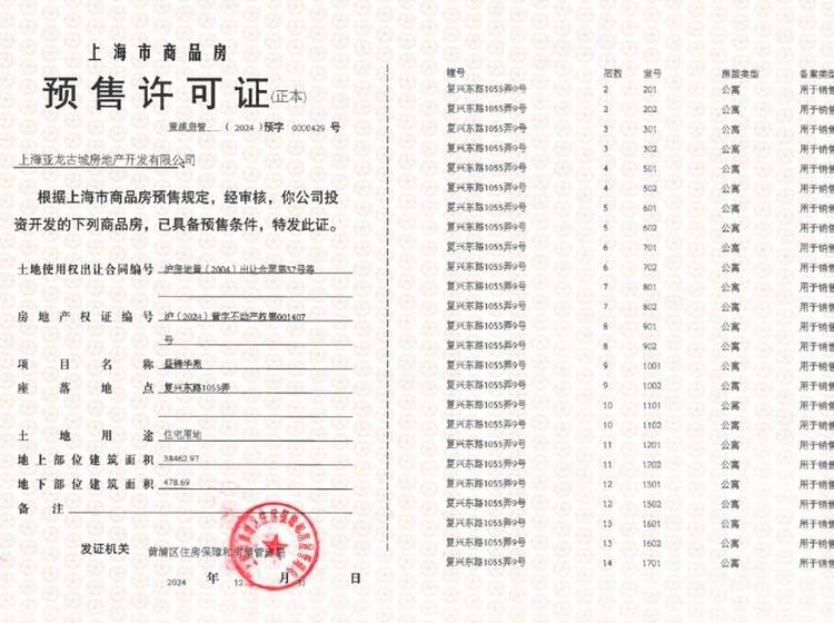 - 黄浦房管(2024)预字0000429号 详情发证时间 2024-12-30绑定楼栋复兴东路9#,复兴东路12#