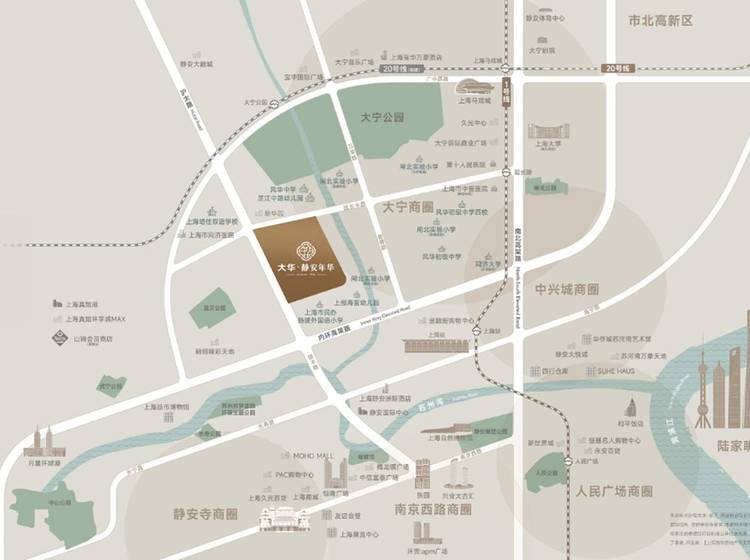 大华静安年华项目位于沪太路与延长中路的交汇处,距离1号线延长路站约1.2公里,距离内环高架约850米,南北高架约1.2公里。