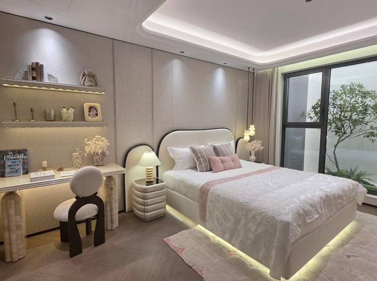 根据设计方案,项目拟建1栋24F高层住宅+3栋5-6F住宅,房源共计175套。整个社区人车分流,高层下方配置了部分商业配套。24F高层住宅,户型建面约 100-140㎡三房 / 四房。5-6层叠加别墅,户型建面约 180-220㎡。