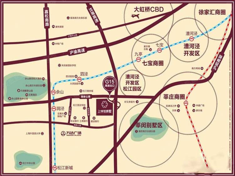 上坤旭辉墅隶属松江区洞泾板块,东靠莘庄成熟商圈,北接洞泾镇社区配套,西临佘山国家旅游度假区,南至松江新城,随着近几年保利、绿地等知名大型地产商的合力开发,现在洞泾已成为上海新兴大型低密度高端居住区。项目周边拥有方便快捷的立体交通网,G60、G50、G15环绕,莘砖公路一路向东即可直达莘庄商圈。