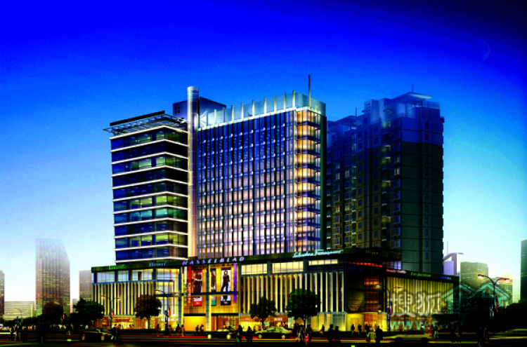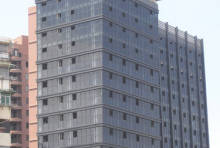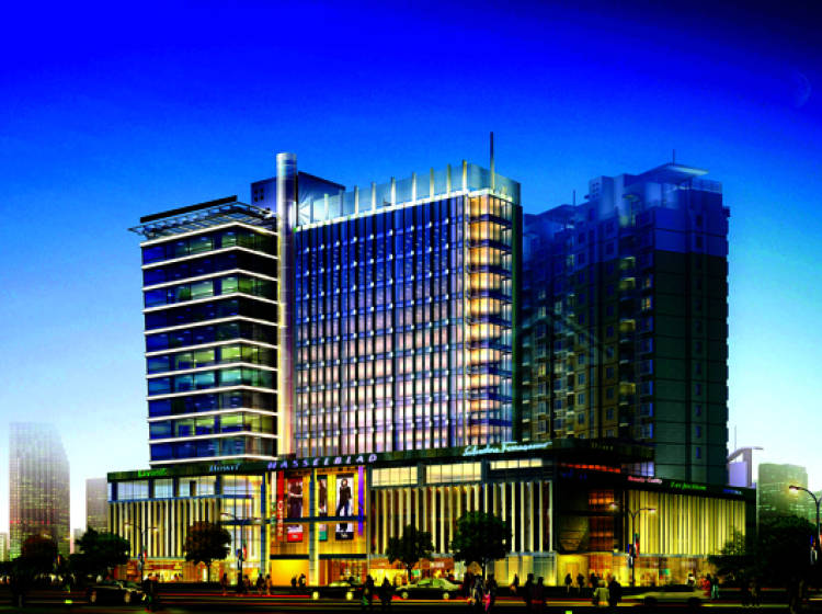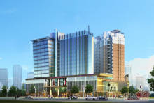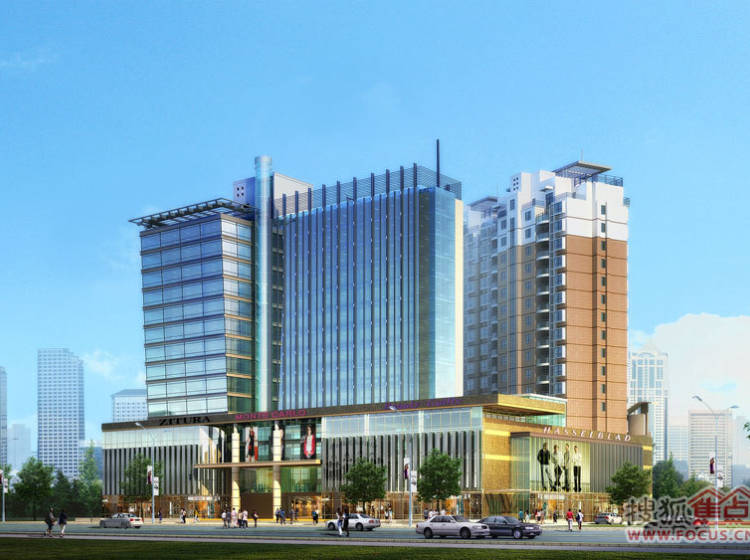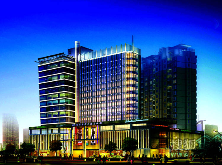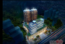 商业建筑本项目商业部分分为地上三~四层商业建筑,地下一层车库。商场一层高4.35米,地下车库层高4.2米。总建筑面积9600平方米,商业建筑立面设计既与小区风格吻合,又体现了商业建筑的特色,立面采用石材,涂料和金属构件及透明玻璃和磨砂玻璃相结合的处理手法,轻盈丰富,承接酒店式公寓。