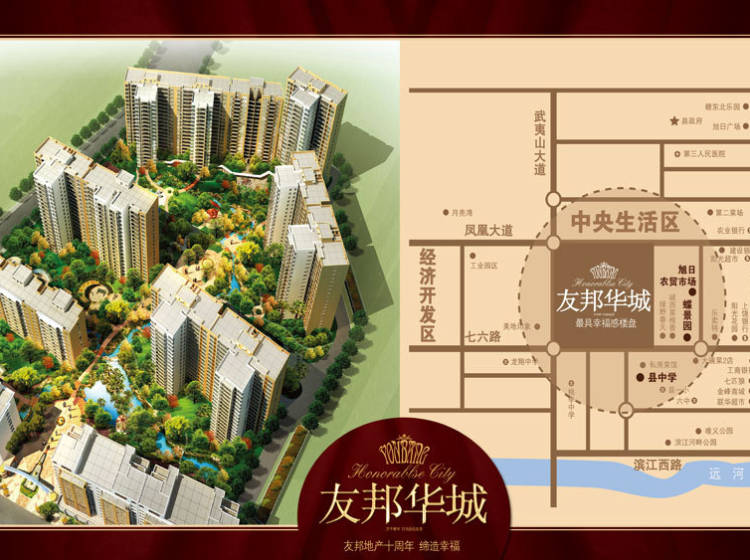 友邦华城是由江西鑫邦集团开发的继友邦蝶景园后,又一奢华品位大作。总占地约50余亩,总建面积约10万平米,由8栋纯高层恢弘建筑半围合式组成。项目位于城西中央生活区,上饶县七六路核心地段,距市区十分钟车程。小区周边生活配套齐全,离省重点高中上饶县中学、旭日农贸市场、银行、美食购物街等步行仅需5分钟,18路公交车、城西循环车就在您的家门口,成熟的生活配套为您日常生活提供便利。小区在整体规划上,多处打破常规,由南昌世纪风情园林景观设计施工的原班人马倾心打造,通过入户花园、假山叠景、小桥流水和园林小品组团,构成多层面、立体化的全坡地景观。60%超高绿化和28%超低密度设计、给您营造家在公园的享受!小区实现100%人车分流、打造上饶排名前列阳光地下车库,特别保证您家人在社区活动的安全。在建筑规划上,超大的公共休闲空间,最宽楼间距达120余米等宽景设计,内有篮球场、儿童游乐园、22000?的立体生态园林,让您在小区即可尽享奢华配套。友邦华城,在建筑用材上,采用中空玻璃、多孔砖、空心砖、高级通体砖等高档环保节能材料。