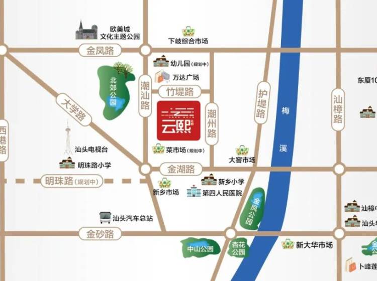 汕头市金平区潮汕路与竹堤路交汇处(万达广场南公交站旁)