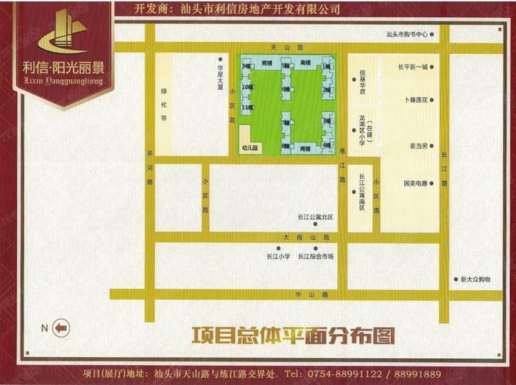利信·阳光丽景由汕头市利信房地产开发有限公司开发建设,位于汕头市龙湖区天山路与练江路交界处,交通便利,小区周围生活设施齐全。