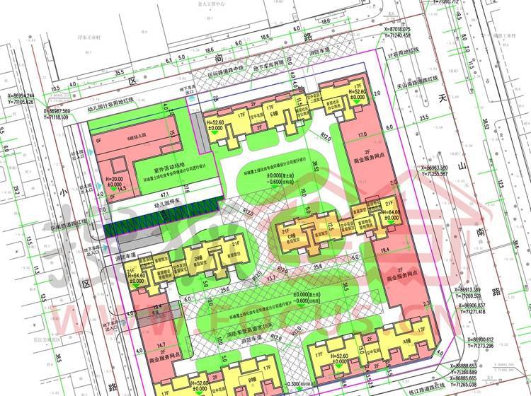 一所幼儿园、两层商铺、两层地下停车场