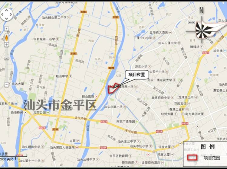 项目场址东隔龙湖沟为汕樟路,南为海霸王食品公司、西临梅溪河,北为高成纸业公司及学校用地。
